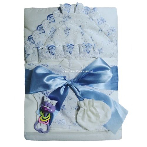 "МоёДитё" комплект на выписку из 14 предметов голубой 140ТС (лето) "Вербена"
